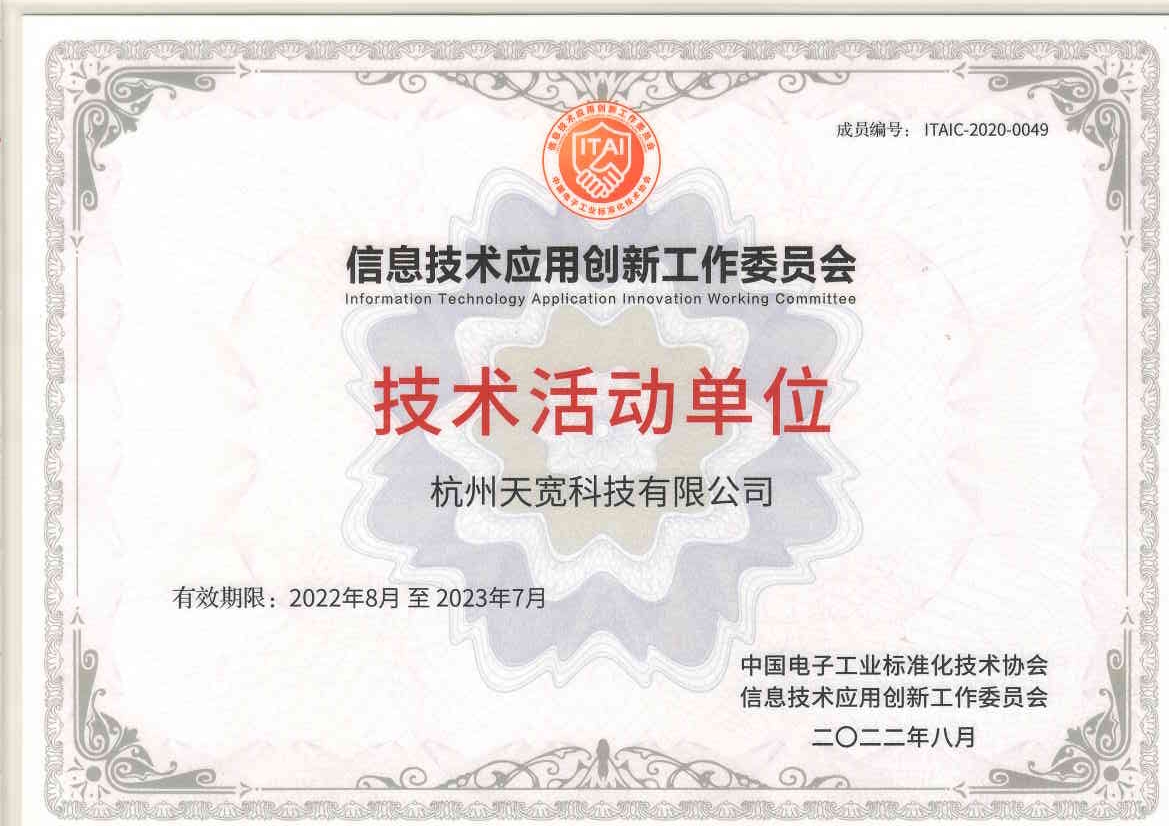 近日,天寬榮獲中國(guó)電子工業(yè)標(biāo)準(zhǔn)化技術(shù)協(xié)會(huì)、信息技術(shù)應(yīng)用創(chuàng)新工作委員會(huì)(以下簡(jiǎn)稱信創(chuàng)工委會(huì))聯(lián)合頒發(fā)的《信息技術(shù)應(yīng)用創(chuàng)新工作委會(huì)員技術(shù)活動(dòng)單位》證書。該證書主要頒發(fā)給持續(xù)技術(shù)創(chuàng)新活躍度較高的信創(chuàng)工委員成員單位,是對(duì)堅(jiān)持持續(xù)創(chuàng)新類會(huì)員單位的肯定。