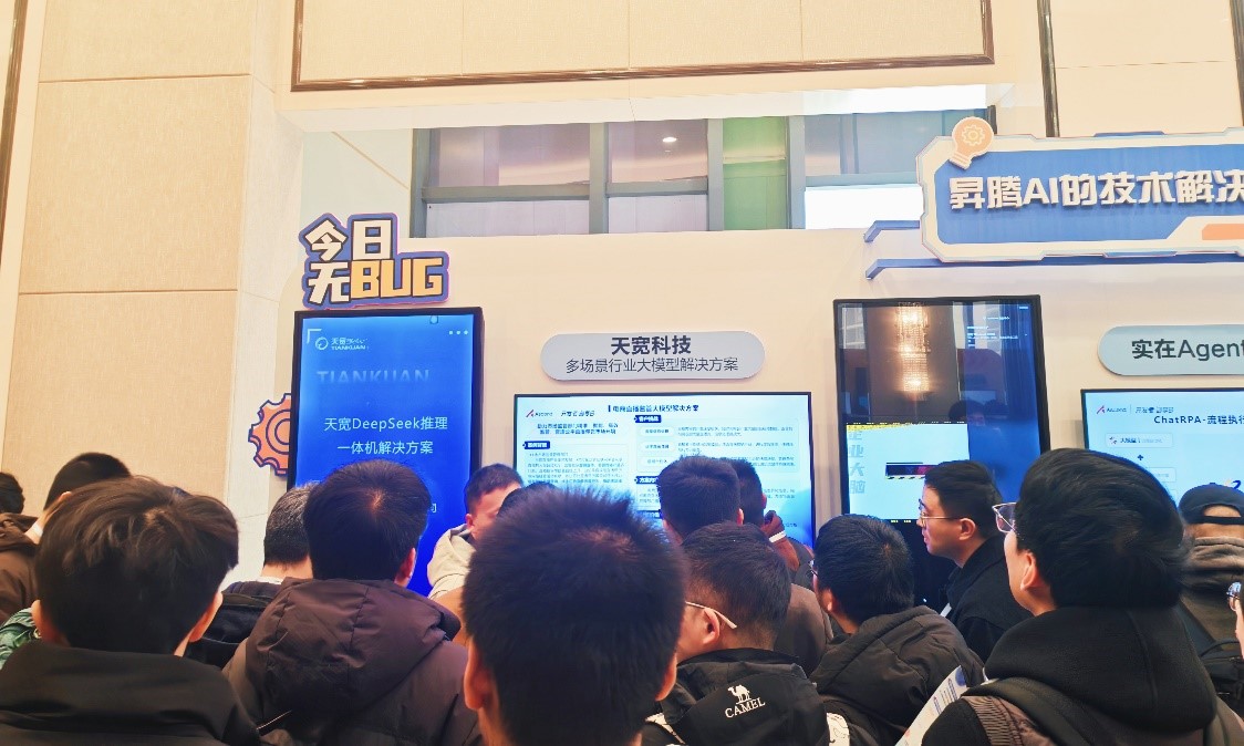 活動(dòng)現(xiàn)場(chǎng),天寬展臺(tái)重磅推出了多場(chǎng)景行業(yè)大模型解決方案,并向參觀者展示了天寬昇騰DeepSeek一體機(jī)產(chǎn)品。展臺(tái)現(xiàn)場(chǎng)人頭攢動(dòng),氣氛熱烈非凡。