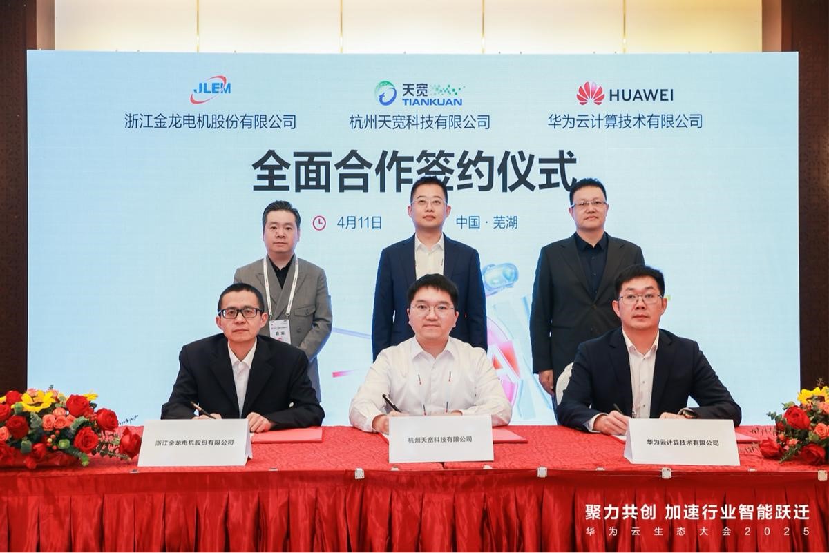 4月11日上午,天寬董事長(zhǎng)盧曉飛與華為云全球生態(tài)部總裁康寧、金龍電機(jī)總經(jīng)理葉葉出席三方全面合作協(xié)議簽署儀式,共同見證面向浙江省電機(jī)行業(yè)的首個(gè)AI場(chǎng)景應(yīng)用合作落地。此次全面合作聚焦AI技術(shù)在電機(jī)行業(yè)的深度應(yīng)用,通過構(gòu)建智能BOM檢索系統(tǒng)與企業(yè)級(jí)AI問答助手,推動(dòng)研發(fā)效率與知識(shí)管理的雙重突破,打造可復(fù)制的“AI+電機(jī)”應(yīng)用范式,助力中小電機(jī)企業(yè)降低數(shù)字化轉(zhuǎn)型門檻,為全國(guó)制造業(yè)數(shù)字化轉(zhuǎn)型貢獻(xiàn)可推廣的“浙江經(jīng)驗(yàn)”。