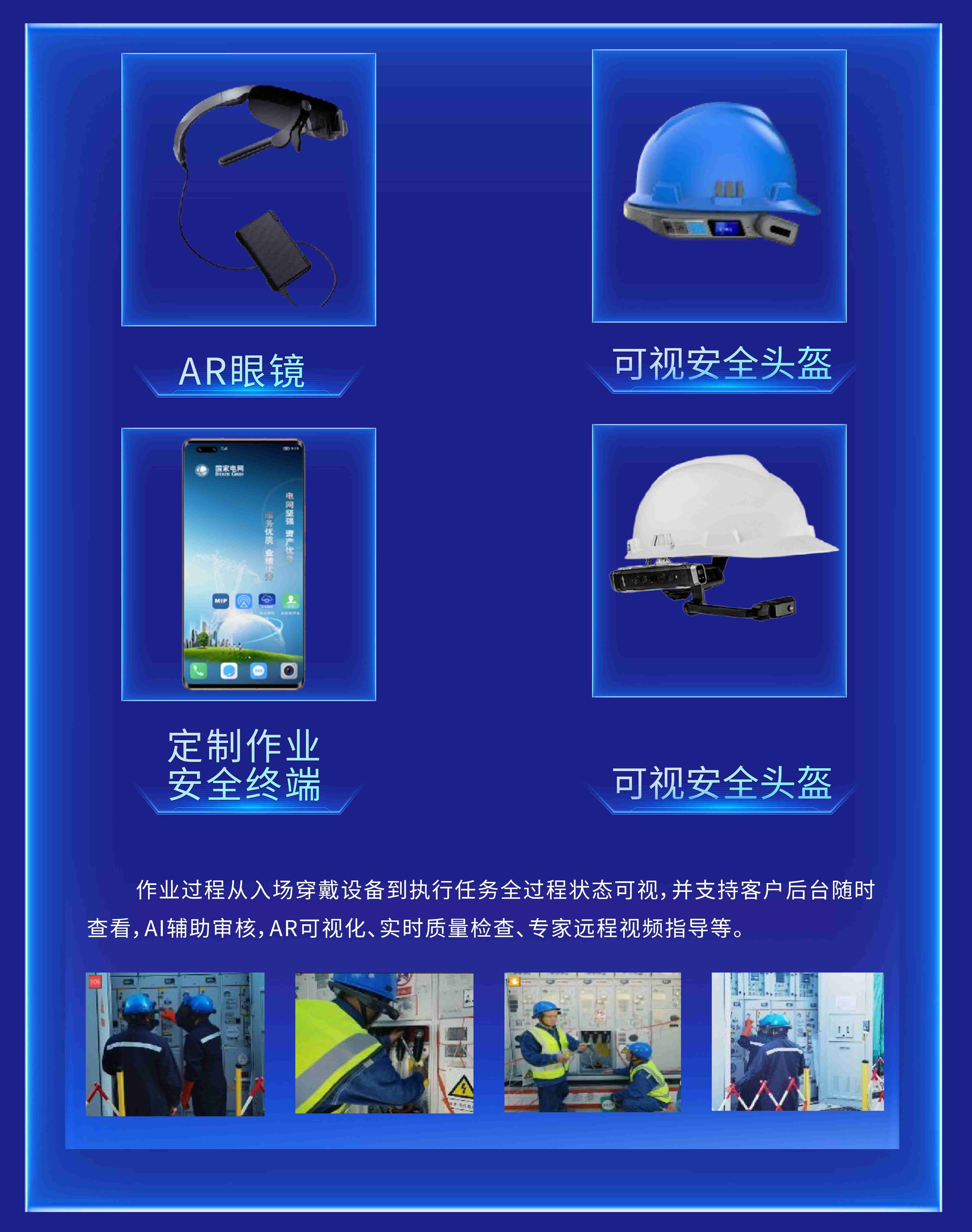 天寬科技憑借深厚的技術(shù)積累和對電力行業(yè)的深刻洞察,自主研發(fā)了一系列電力作業(yè)場景智能終端裝備,包括定制化作業(yè)終端、AR眼鏡、可視安全頭盔等。這些設(shè)備緊密貼合電力作業(yè)的實際需求,可實現(xiàn)作業(yè)過程從入場穿戴設(shè)備到執(zhí)行任務(wù)全過程狀態(tài)可視,并支持后臺隨時查看、AI輔助審核、實時質(zhì)量檢查、專家遠程視頻指導(dǎo)等,為電力作業(yè)的高效、安全執(zhí)行提供了全方位的技術(shù)支持。