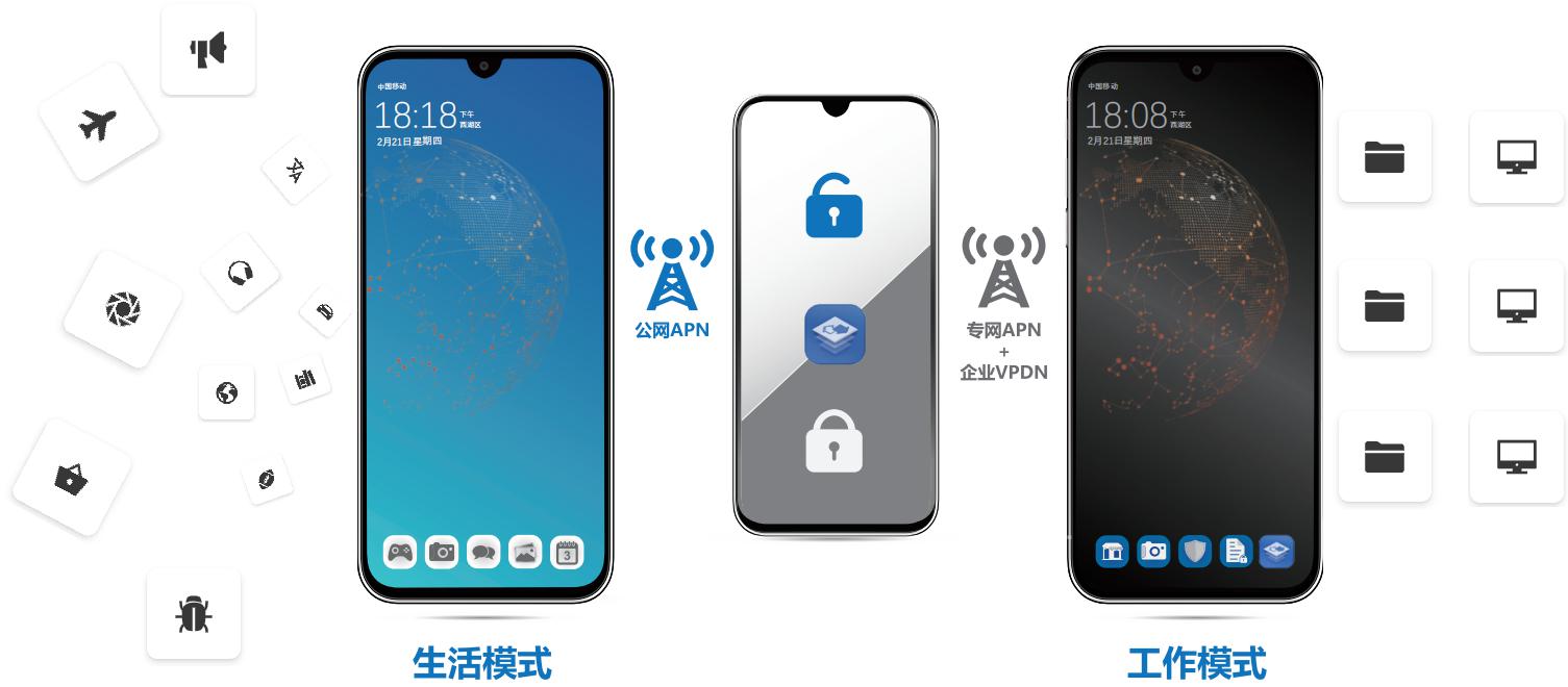 采用安卓虛擬化、數(shù)據(jù)一機(jī)一密和底層接口控制技術(shù),并自有一套安全防護(hù)機(jī)制,實(shí)現(xiàn)業(yè)務(wù)應(yīng)用隔離,進(jìn)入工作環(huán)境終端進(jìn)行安全自檢,防止非法攻擊、用戶(hù)無(wú)意操作泄露、網(wǎng)絡(luò)環(huán)境自動(dòng)切換、落地?cái)?shù)據(jù)自動(dòng)加密、截屏拷貝選擇性禁止、通信信息隔離,同時(shí)退出安全域工作環(huán)境后進(jìn)行工作痕跡清理、日常網(wǎng)絡(luò)自動(dòng)恢復(fù),實(shí)現(xiàn)用戶(hù)工作和生活的無(wú)縫無(wú)感銜接,并且切實(shí)保證用戶(hù)數(shù)據(jù)安全,提高用戶(hù)工作效率,保證用戶(hù)安全。該產(chǎn)品廣泛運(yùn)用于在廣東檢察院、法院等政務(wù)領(lǐng)域,并獲得了良好用戶(hù)體驗(yàn)和數(shù)據(jù)防護(hù)效果。